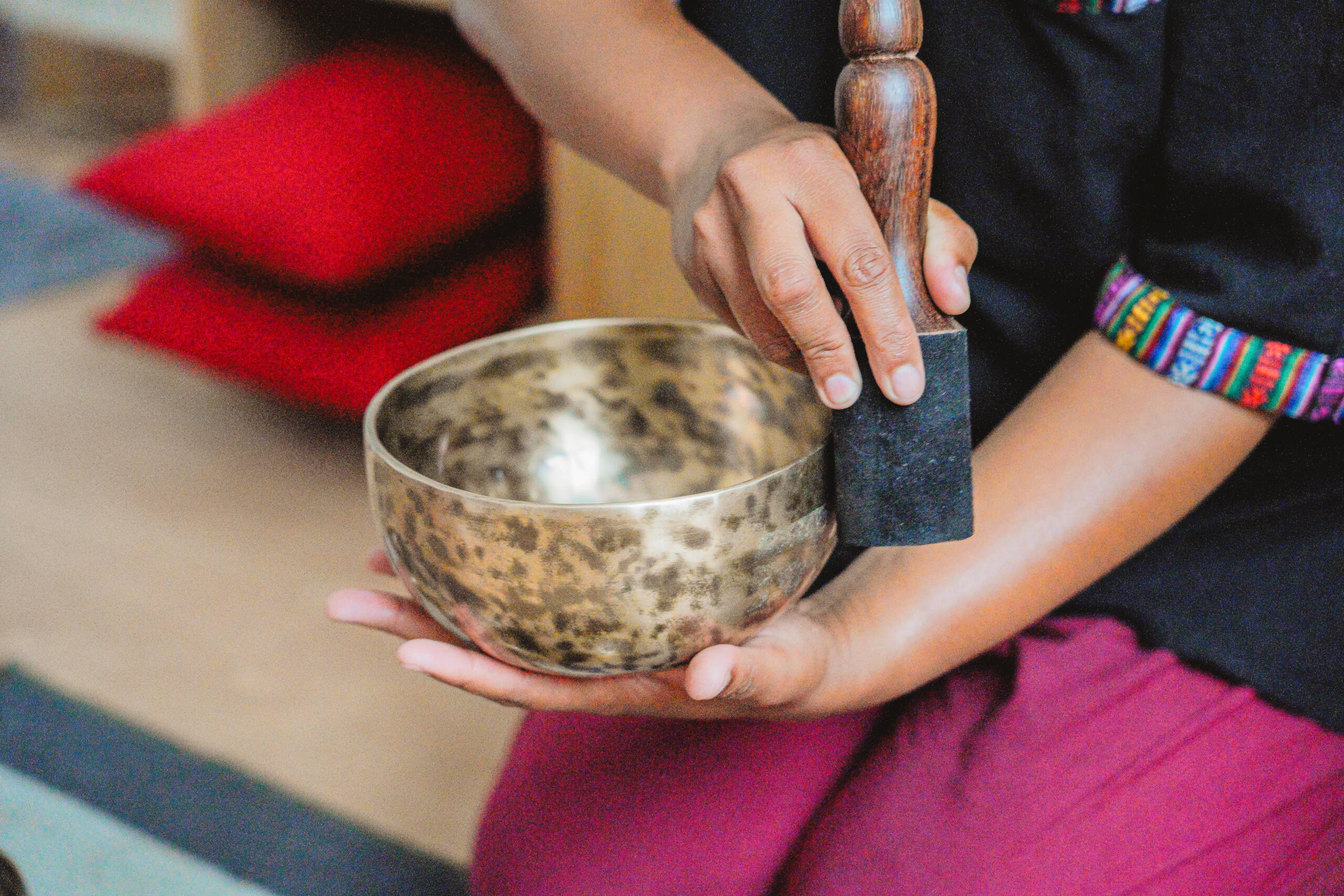 Les bols tibétains fonctionnent par les vibrations qu'ils émettent lorsqu'on les fait chanter ou sonner.